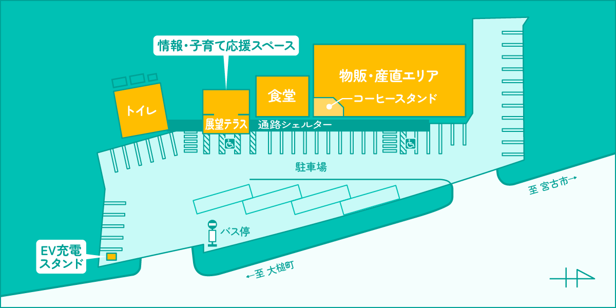 施設内は、三陸・山田のお土産品・特産品が揃う売店コーナー、山田周辺の新鮮な海の幸、山の幸が揃う産直コーナー、軽食から定番メニューが味わえる食堂コーナー、テイクアウトで自家焙煎の本格コーヒーを提供するコーヒースタンドがあり、食事や買物、トイレ休憩、旅行・観光情報の入手等のお客様で賑わをみせています。